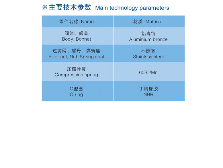 該閥為內(nèi)螺紋連接,由閥體、閥蓋、壓縮彈簧、閥桿及膜片等組成,內(nèi)部附有過濾網(wǎng)便于清除雜物。